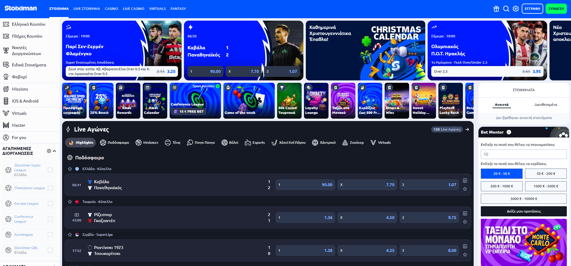 - Ευρεία γκάμα ειδικών στοιχημάτων